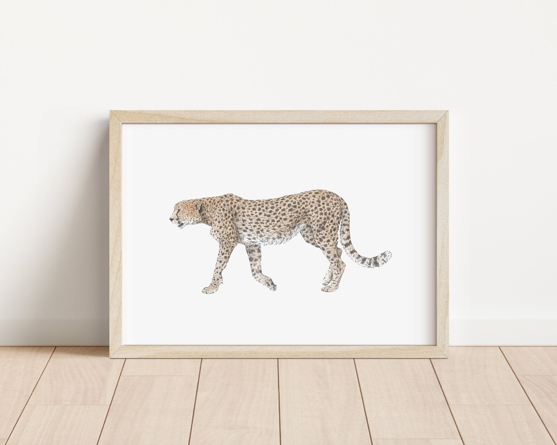 Drawing of a cheetah. Available in A5 (210 x 148 mm) and A4 (297 X 210 mm).