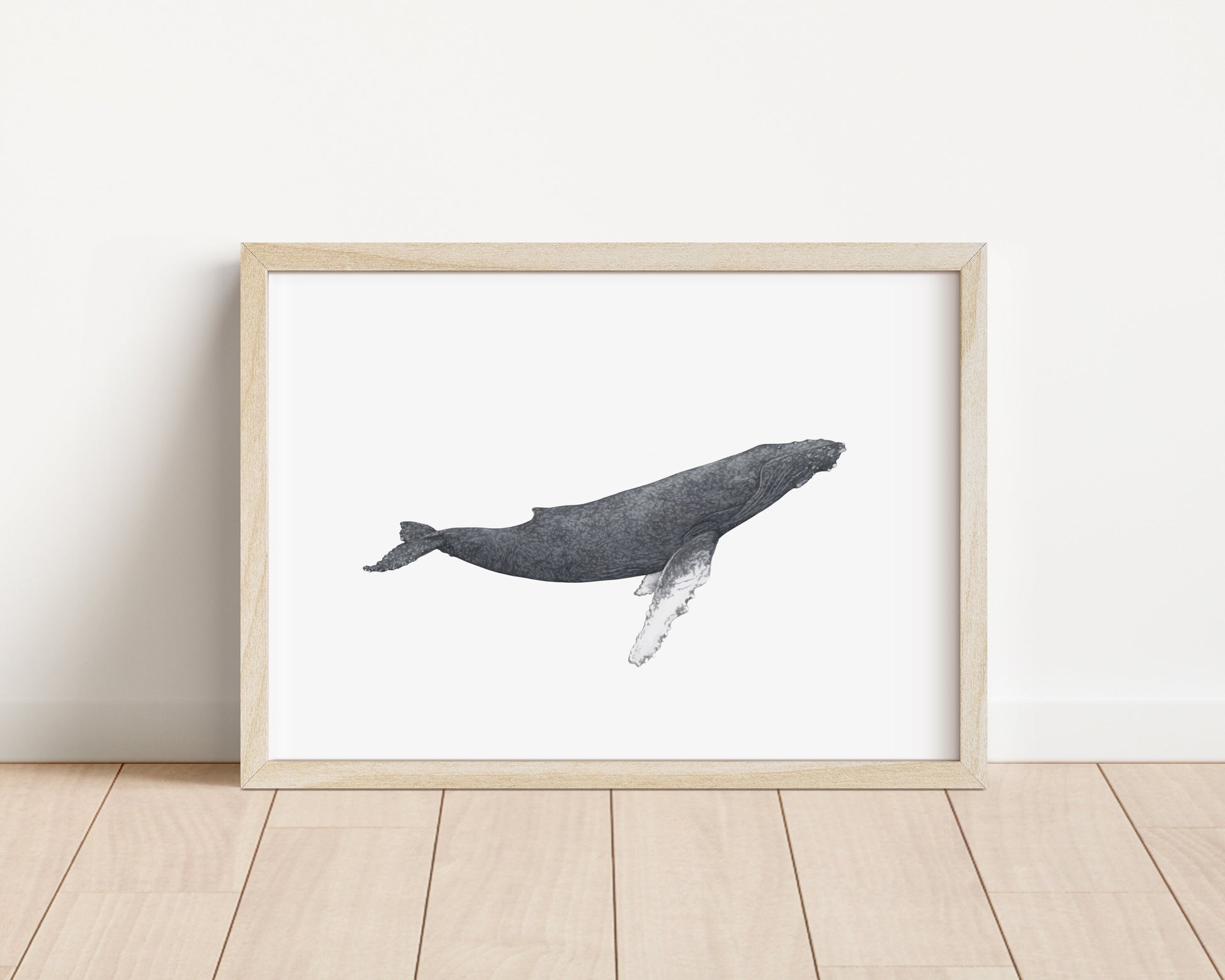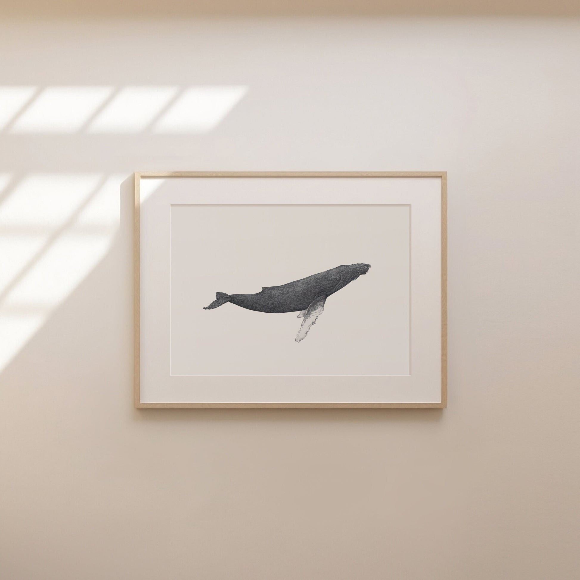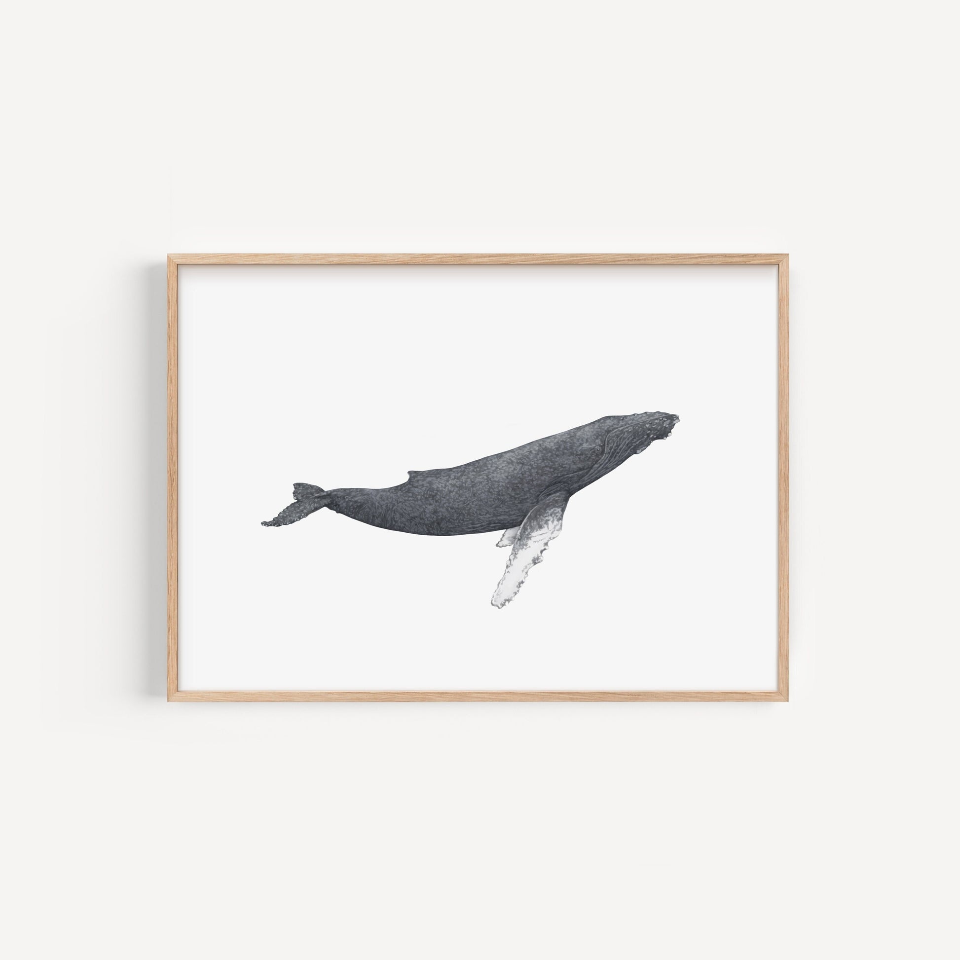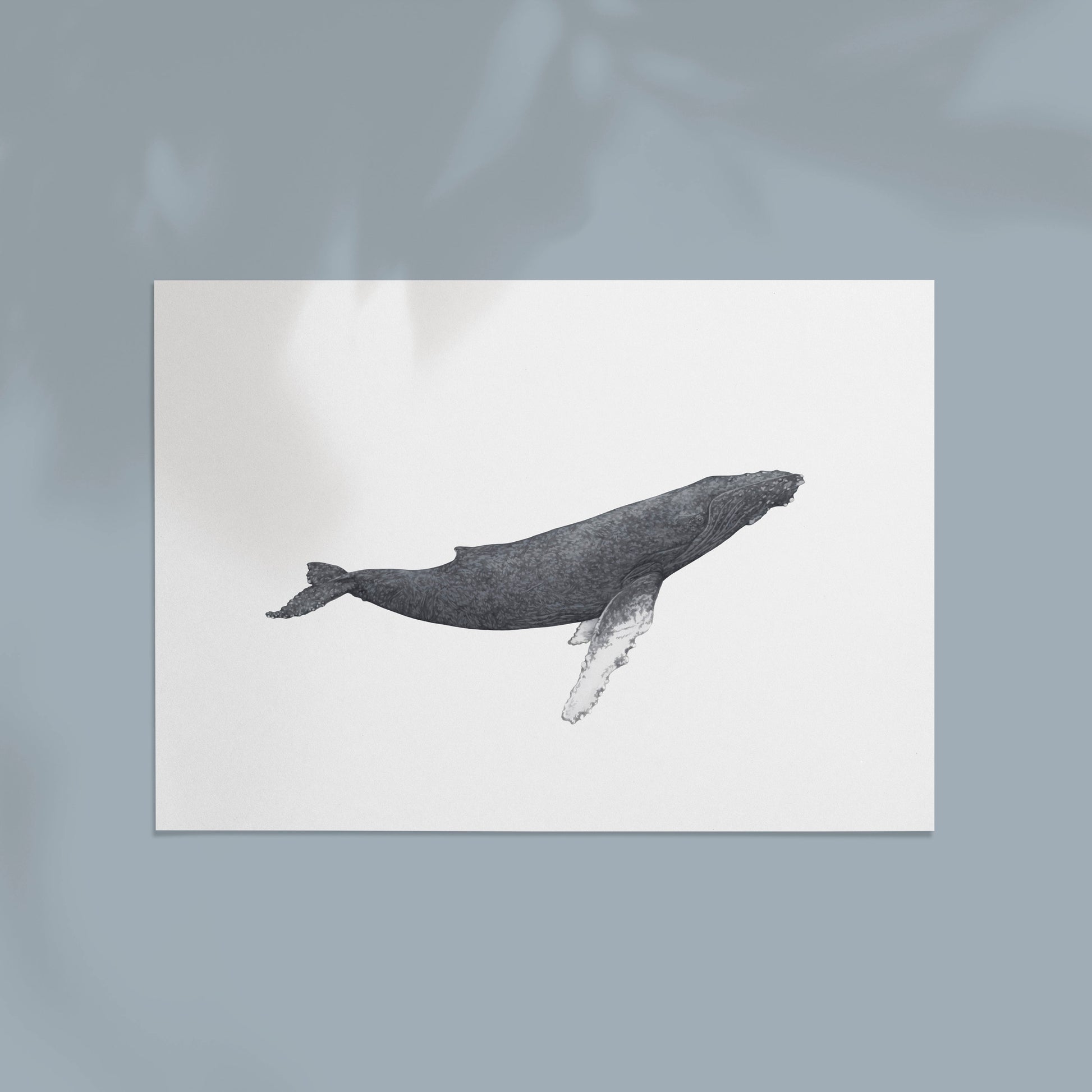 Drawing of a humpback whale. Available in A5 (210 x 148 mm) and A4 (297 X 210 mm).