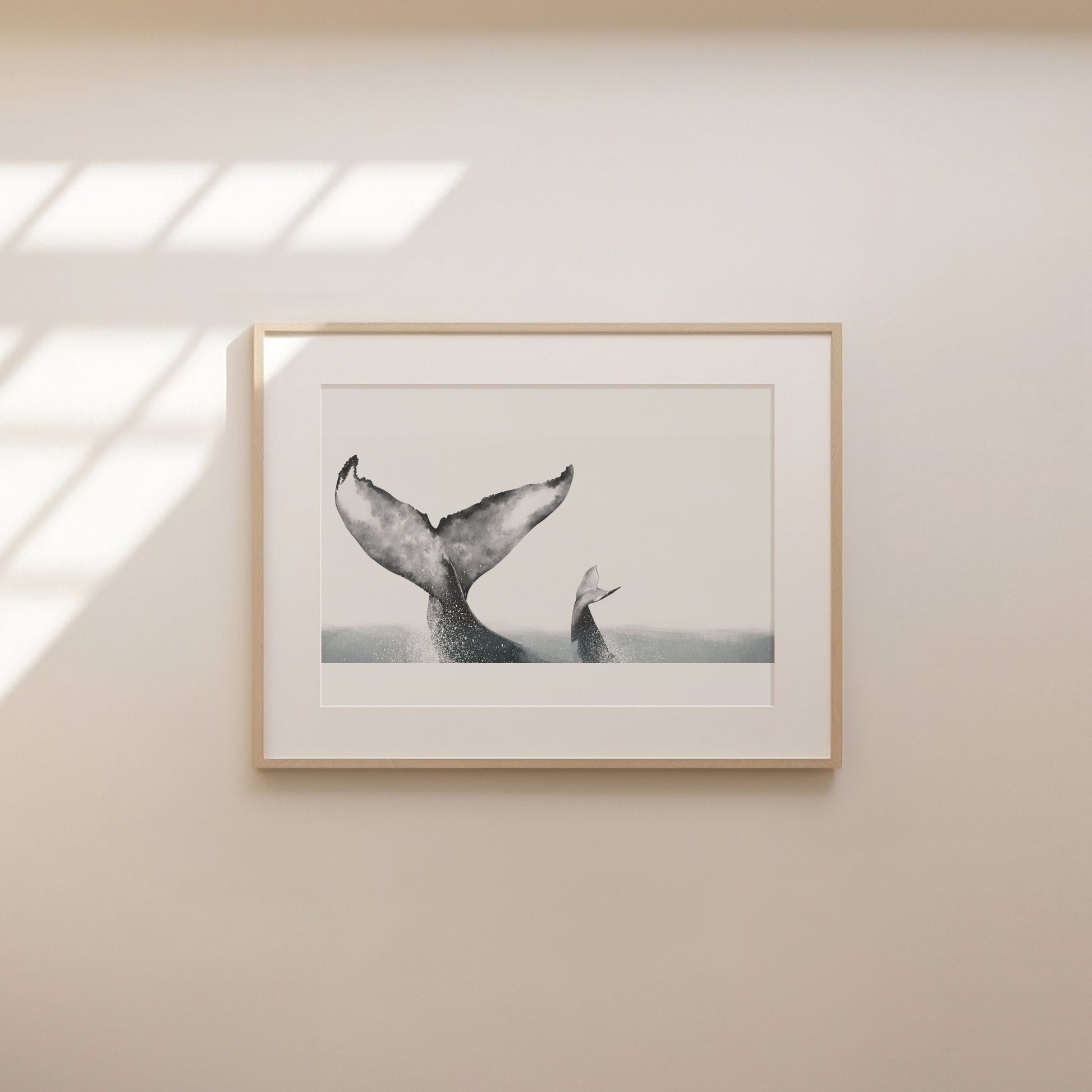 Mother and Calf humpback whale Illustration. Originally drawn in pencil and then colour and texture were added. This illustration is taken from a children's book which I wrote and illustrated during my Children's book MA called 'Every Whale' (unpublished).