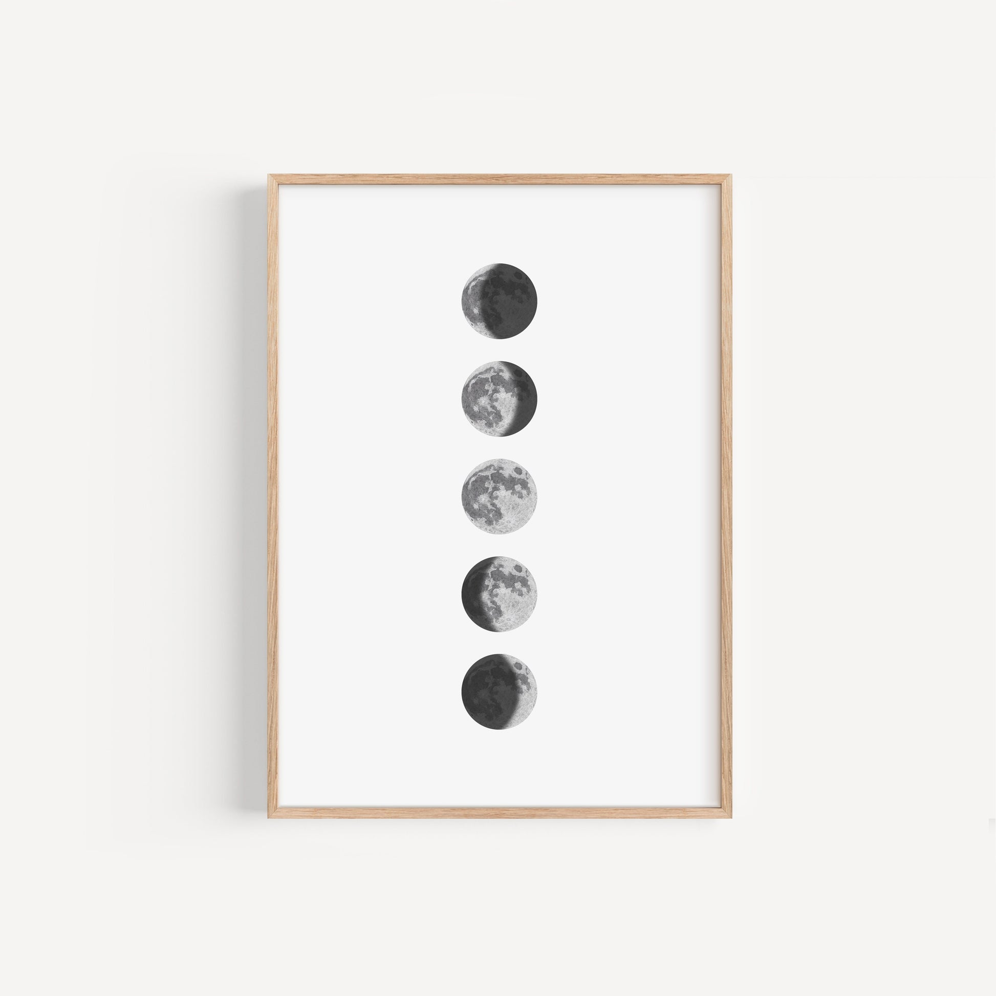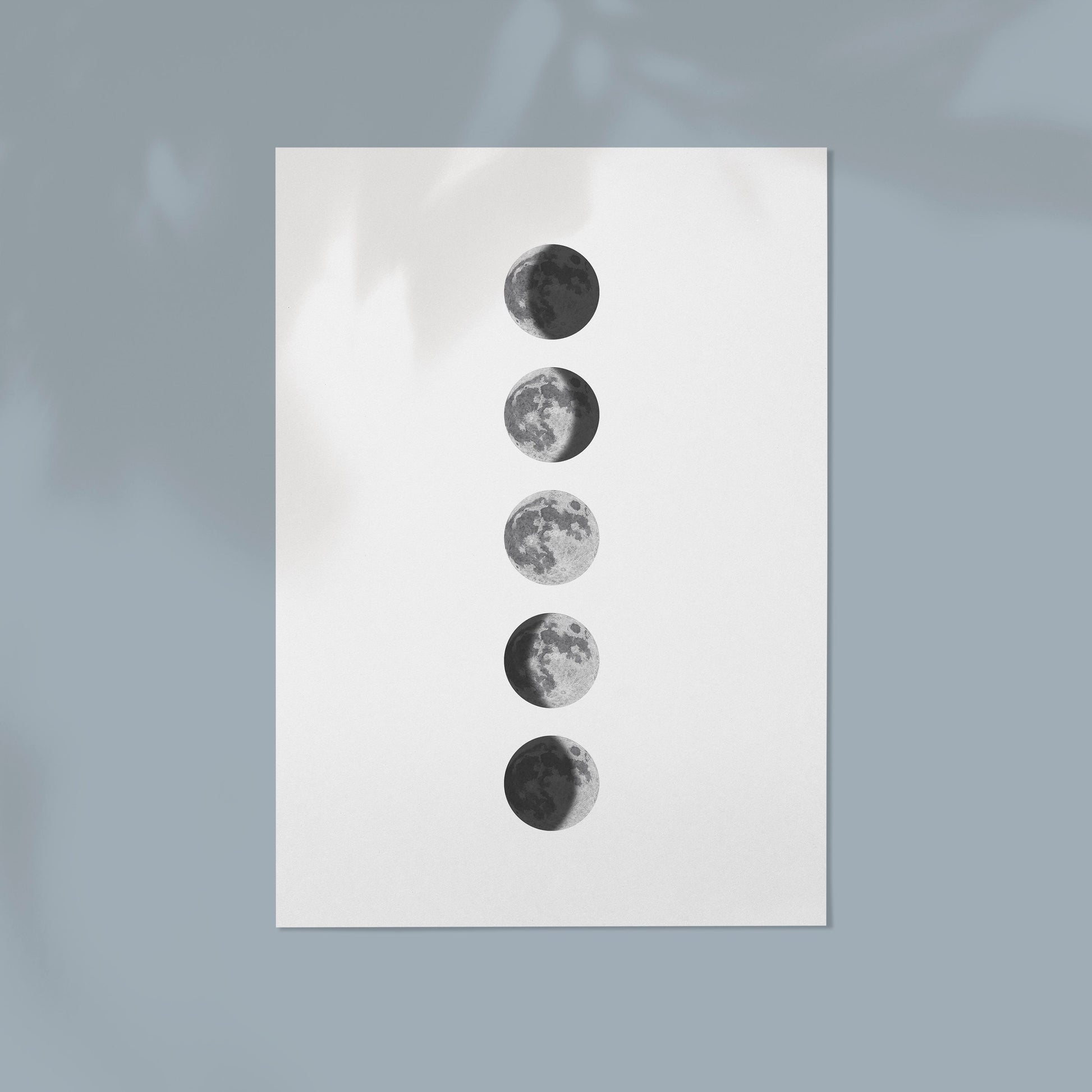 5 moon phases print. Originally drawn in pencil and coloured digitally.