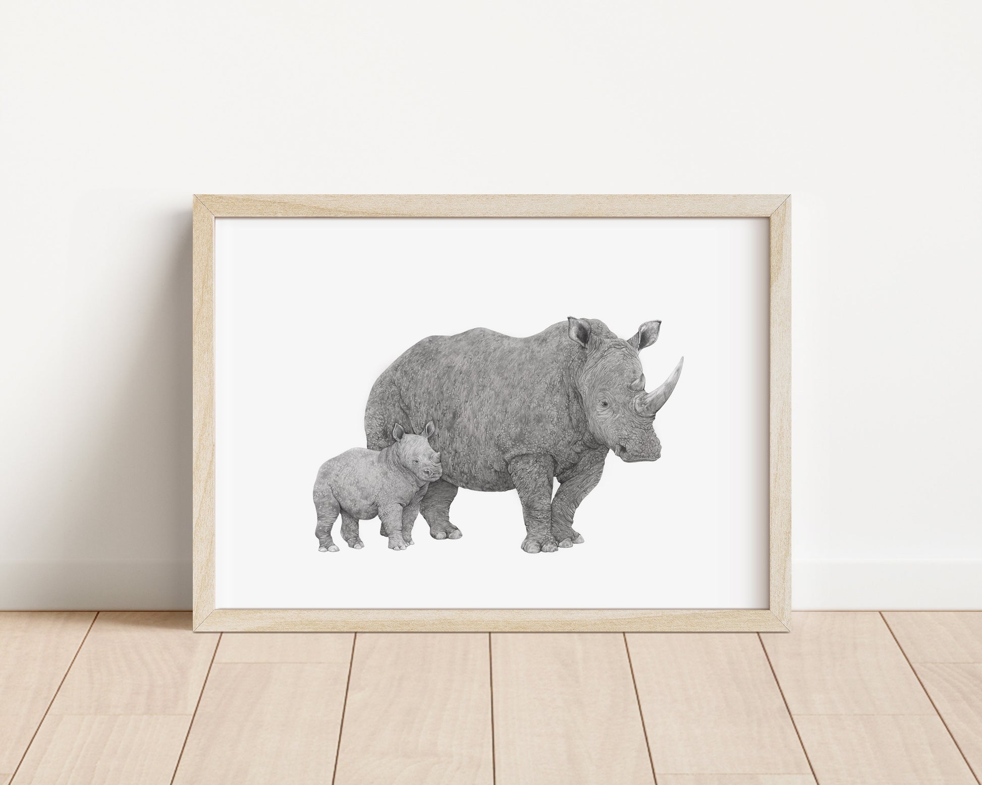 Rhino Mother and Baby Print