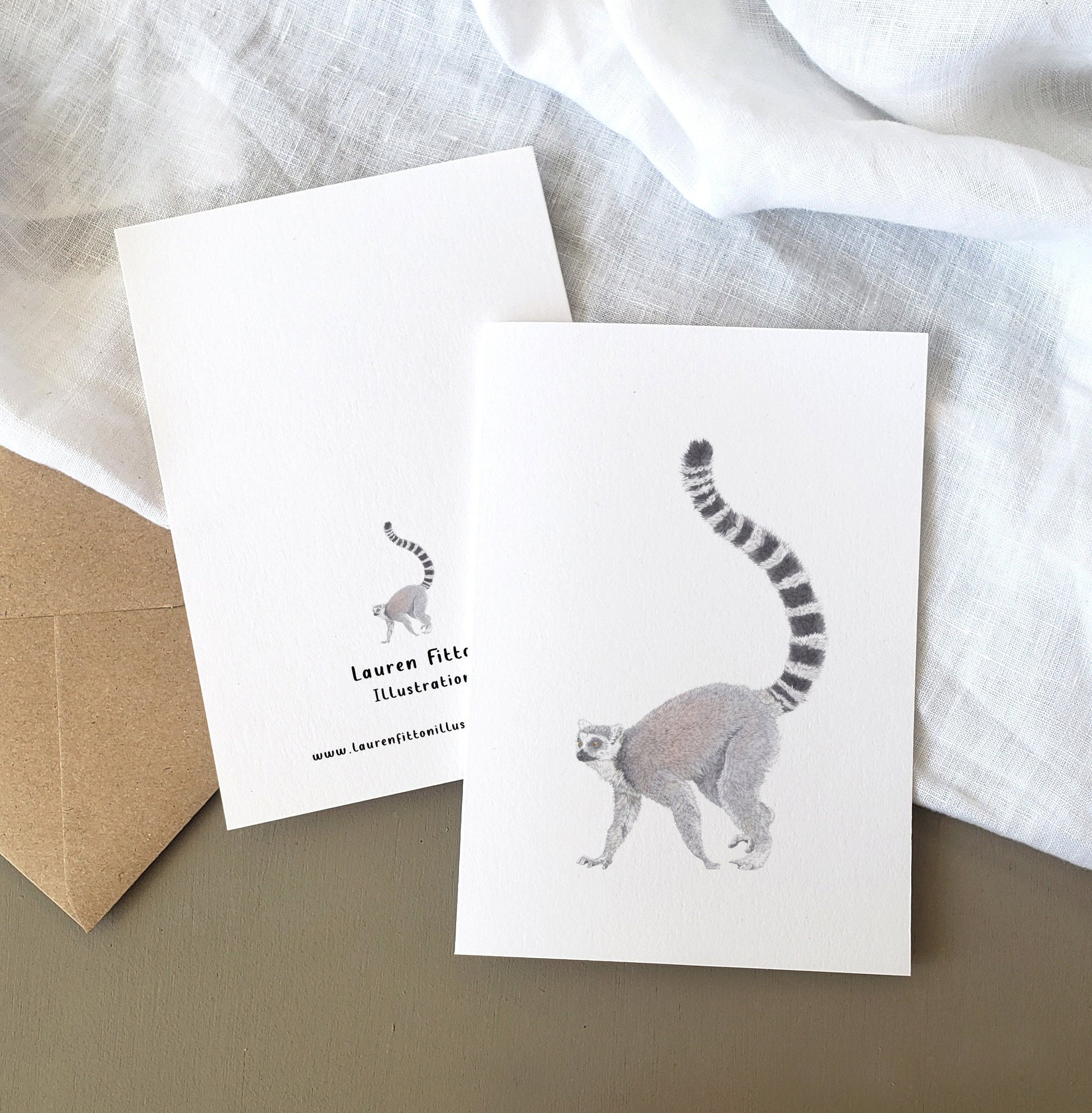 Ring-tailed lemur Illustration A6 greetings card for any occasion
