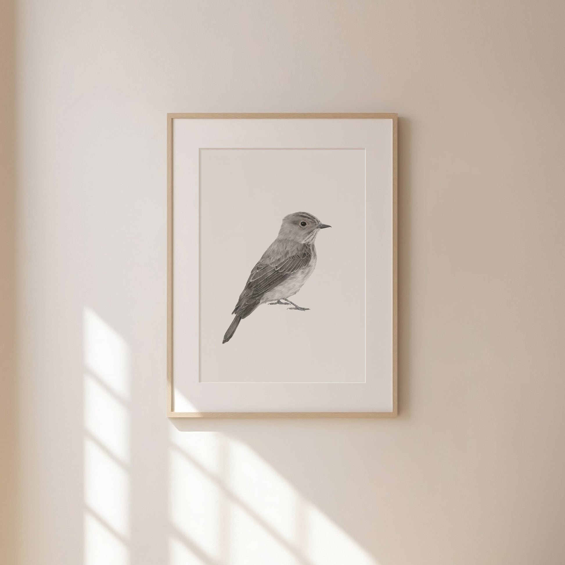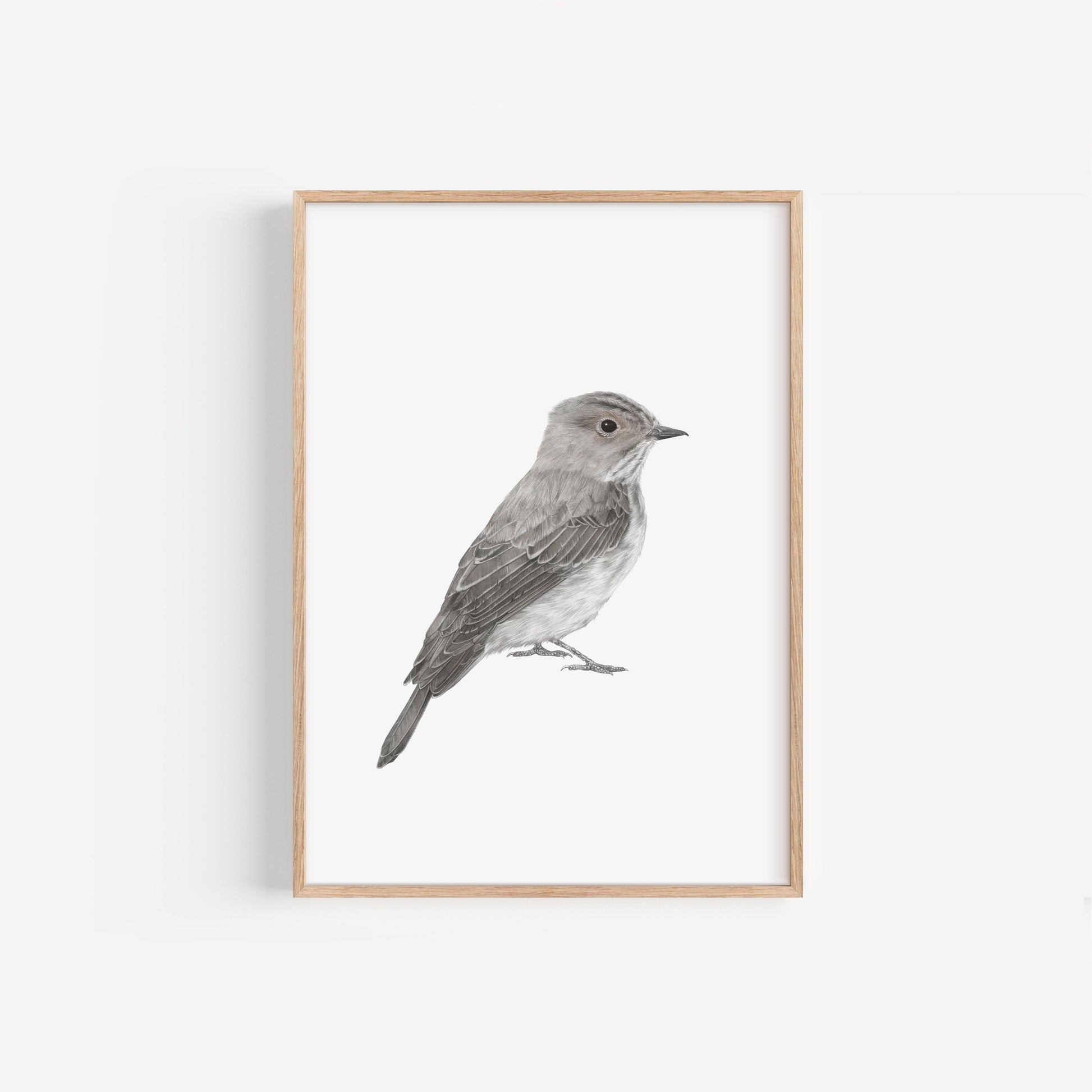 Drawing of a Spotted flycatcher. Available in A5 (210 x 148 mm) and A4 (297 X 210 mm).