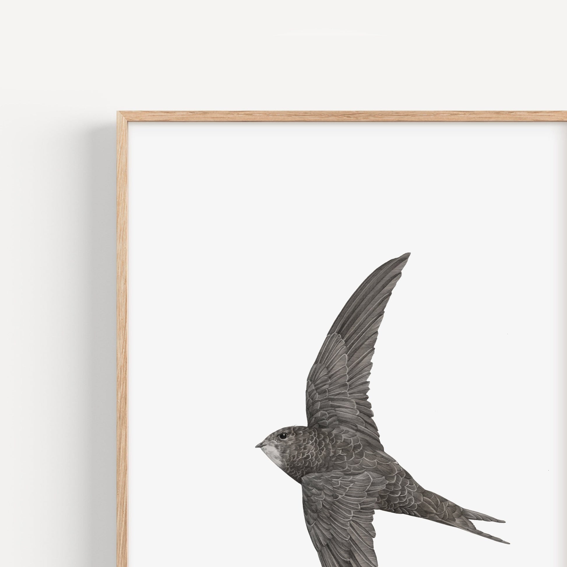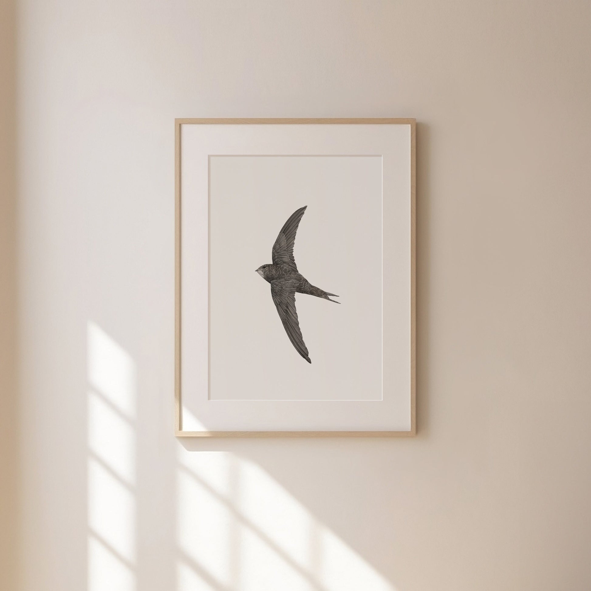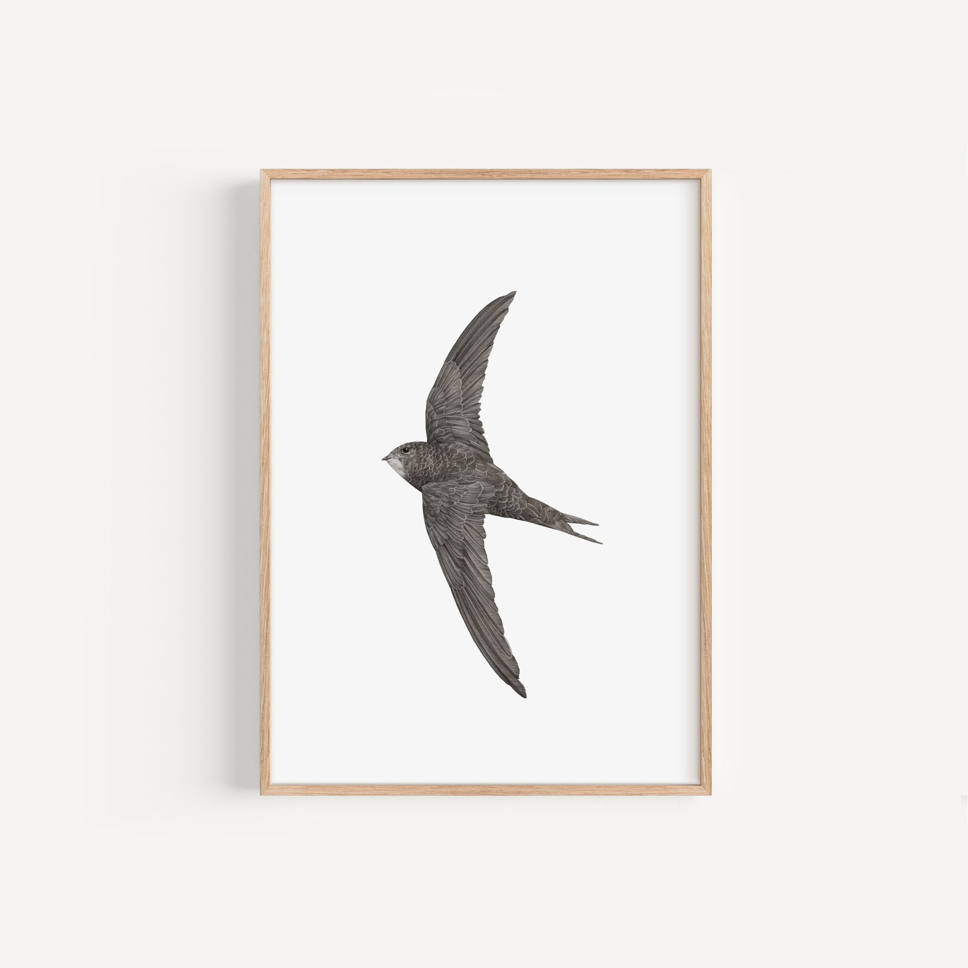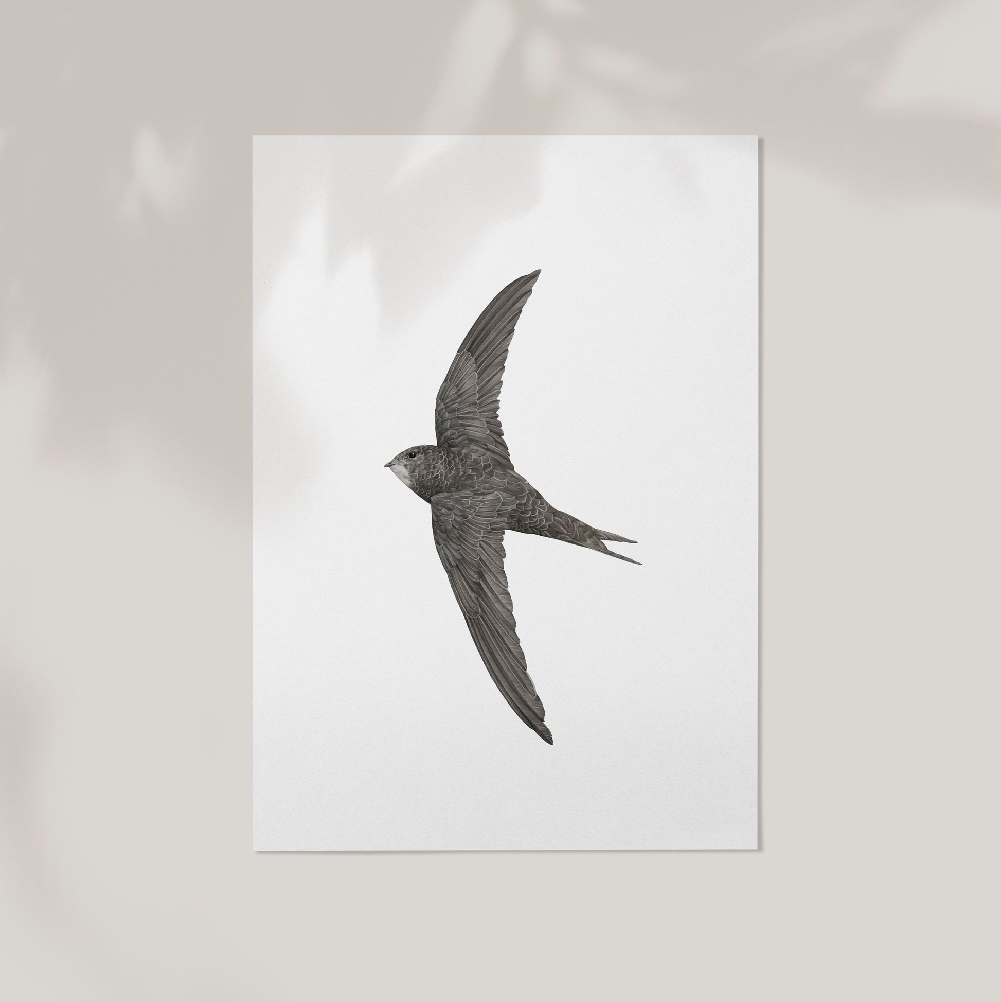 Drawing of a swift. Available in A5 (210 x 148 mm) and A4 (297 X 210 mm).
