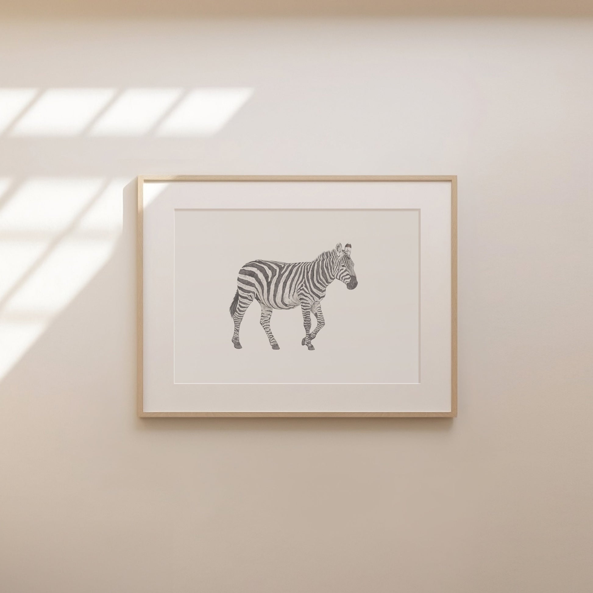 Drawing of a zebra. Available in A5 (210 x 148 mm) and A4 (297 X 210 mm).